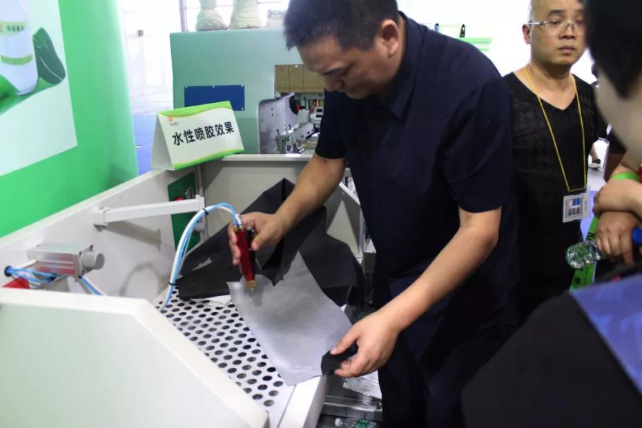 水性噴膠JY-9006:無味無毒無污染、高固含、省膠、開放時間長;對皮料、布料或極易吸膠的材質都有良好的貼合效果。