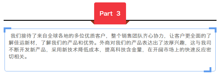 展覽會雖然已經結束,但戰斗才剛剛打響!我們將精心準備,要讓各位客戶相信,佳運新材是你們堅實的后盾,是值得信賴和合作的優質廠商。
